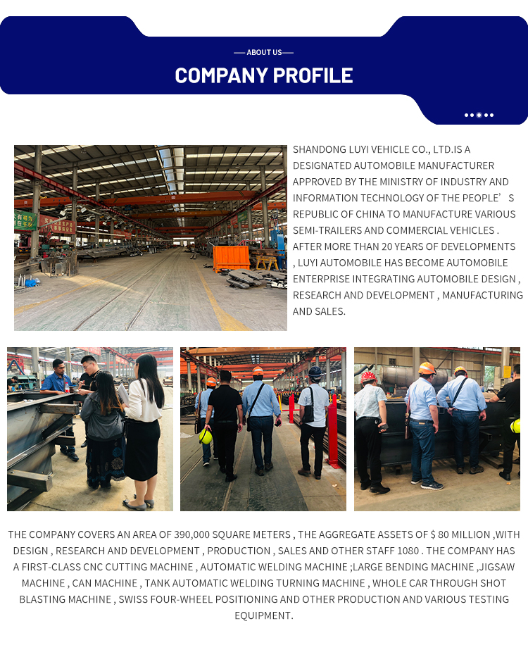 تتوافق هذه المقطورة بمرونة مع تكوينات المحور 2/3/4، مقترنة بنظام تعليق ميكانيكي وإطارات 12R225 لقيادة مستقرة ومقاومة قوية للصدمات. إنها مجهزة بمعدات هبوط قياسية بوزن 28 طنًا للحصول على دعم ثابت وموثوق، وتوفر الحافات خيارات متعددة من 8.0/9.0×8/12/16 قطعة للتكيف مع ظروف العمل المختلفة. يعتمد Kingpin مواصفات JOST مقاس 2 بوصة (50 مم) أو 3.5 بوصة (90 مم)، وهو متوافق مع معظم الجرارات، ويضمن نظام الكبح ثنائي الخط سلامة القيادة. بالإضافة إلى ذلك، يمكن تخصيص الحجم واللون وفقًا للاحتياجات، مما يلبي متطلبات النقل الشخصية للعملاء بشكل كامل.