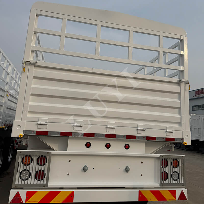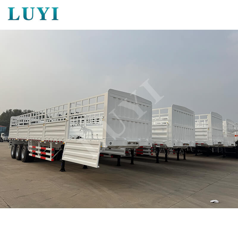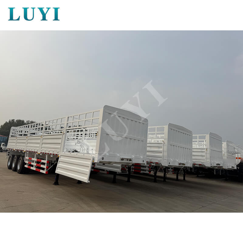 Luyi Vehicles'这款仓栅式半挂车 تنبع من مقاطعة شاندونغ، الصين. مع حمولة فعالة كبيرة جدًا تبلغ 80 طنًا كميزة أساسية لها، فهي مصممة خصيصًا لنقل البضائع الثقيلة. إن الأبعاد 12500×2500×1200 مم، مع الألواح الجانبية 1.5 متر، لا تضمن فقط قدرة التحميل ولكن أيضًا تقيد البضائع بقوة، مما يجعلها مناسبة لسيناريوهات الشحن المختلفة.