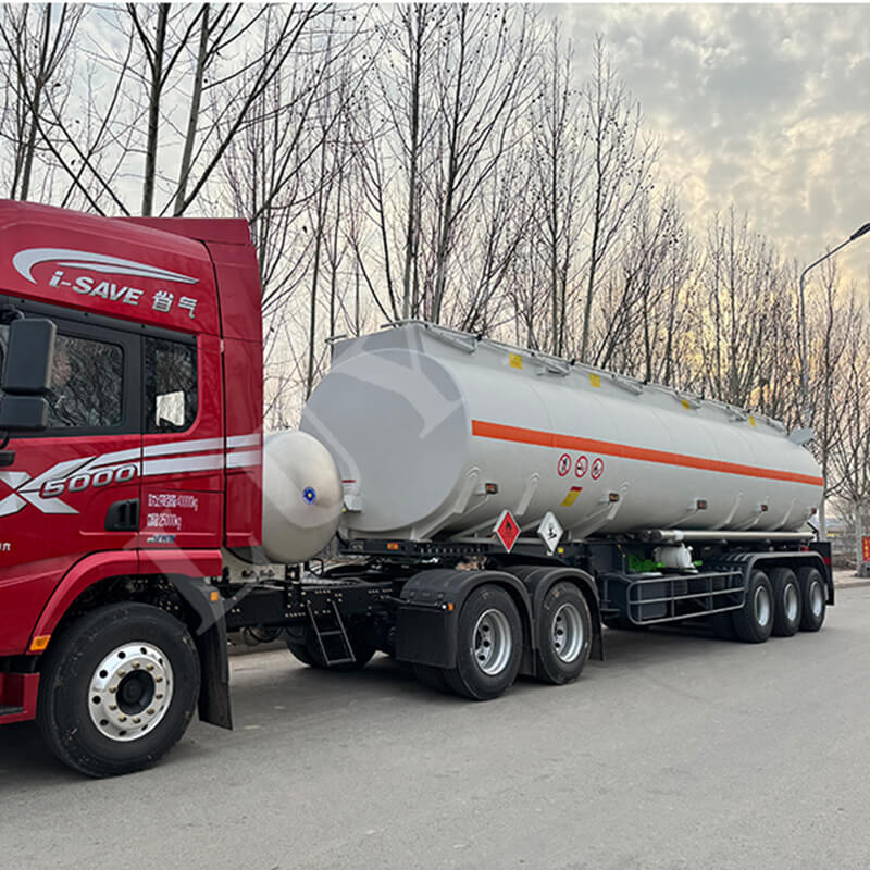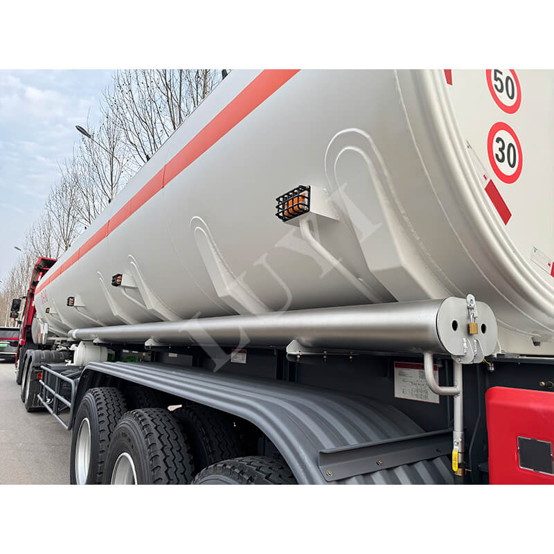 بأبعاد 12500×2500×3600 مم، جسم الخزان مصنوع بشكل أساسي من الفولاذ، ويمكن أيضًا إقرانه مع الفولاذ الكربوني أو مواد سبائك الألومنيوم حسب الحاجة. تم اختيار المحاور الثلاثة بعناية من العلامات التجارية المشهورة بما في ذلك CIMC Dongyue، FUWA وBPW، ومطابقتها للتعليق الميكانيكي لضمان ثبات القيادة. المكونات الرئيسية مجهزة تجهيزًا جيدًا: توفر أرجل الدعم القياسية JOST بوزن 28 طنًا دعمًا ثابتًا؛ يحتوي Kingpin على نماذج JOST اختيارية مقاس 2 بوصة (50 مم) أو 3.5 بوصة (90 مم)؛ تقدم الإطارات ثلاث مواصفات مثل 12R22.5؛ تعمل النوابض الورقية ذات 90×13×10 طبقات على تعزيز أداء التحمل. بالإضافة إلى ذلك، يمكن تخصيص اللون وفقًا لاحتياجات العملاء، والتكيف مع سيناريوهات النقل المختلفة.