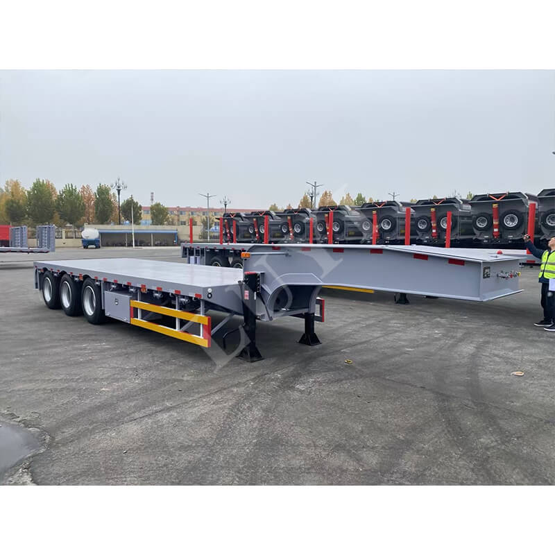 تقدم المقطورة أبعاد 11500/12500/13000×3000×1750mm، والتي تكون قابلة للتخصيص أيضًا. إنها مُجهزة بنوابض ورقية ذات 90 مم (عرض) × 13/16 مم (سمك) × 10 طبقات، ويمكن إختيار المحاور من ماركة FUWA 13/16 طن، مما يضمن التشغيل المستقر والموثوق. يستخدم نظام الكبح صمامات التتابع للاستجابة الحساسة؛ إن Kingpin هو مواصفات JOST 2 بوصة (50 مم) أو 3.5 بوصة (90 مم)، ويعتمد جهاز الهبوط نوع JOST 28 طن ثنائي السرعات لسهولة التشغيل. يمكن تخصيص الألوان لتناسب سيناريوهات النقل المتنوعة.