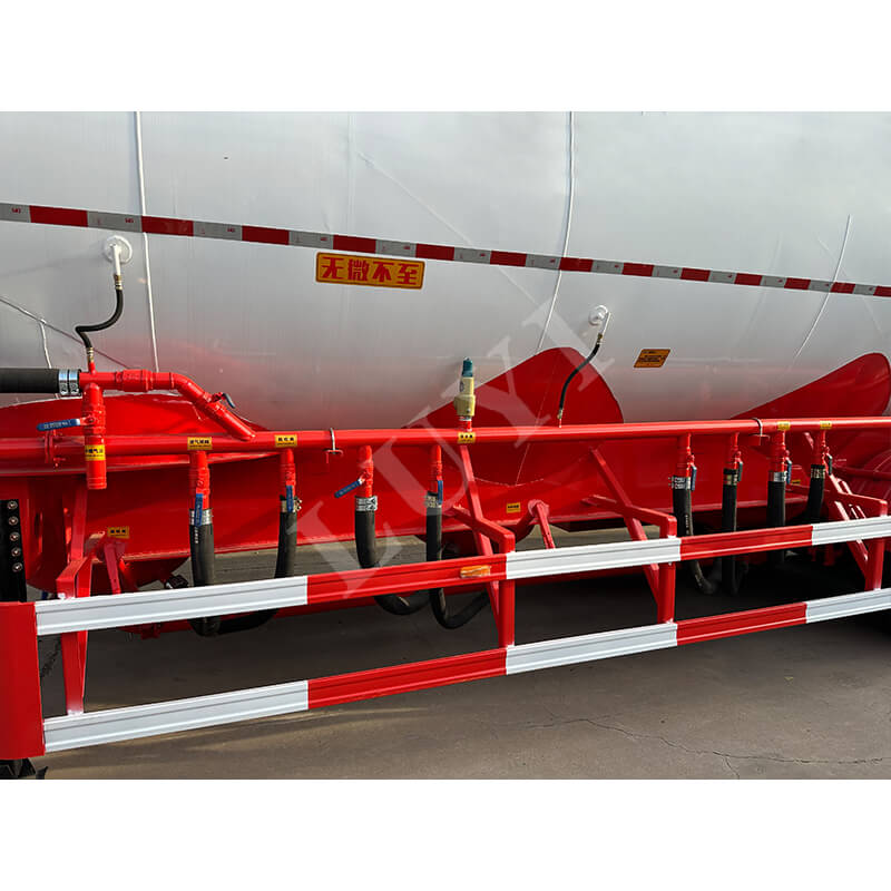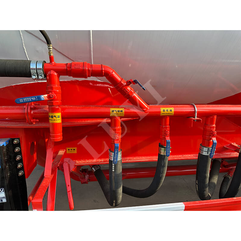 مصنوعة بالكامل من الفولاذ عالي الجودة، وتعتمد المقطورة على 16 قناة فولاذية لعوارضها الجانبية، وتتميز بهيكل صلب وقدرة تحمل ممتازة. أقصى حمولتها الفعالة تصل إلى 80 طنًا وسعة التحميل 50 CBM، والتي يمكنها تلبية الطلب على نقل مسحوق الأسمنت السائب على نطاق واسع. مجهزة بثلاثة محاور، السيارة متطابقة مع إطارات 12R22.5 وإطارات 9.00-22.5. يستخدم نظام التعليق تعليقًا هوائيًا ميكانيكيًا، مما يوازن بين ثبات القيادة وتأثير امتصاص الصدمات. تتميز أرجل الدعم بمواصفات قياسية تبلغ 28 طنًا لضمان سلامة مواقف السيارات. والأكثر جدارة بالثقة هو أن المنتج يأتي مع ضمان لمدة 6 سنوات، مما يوفر حماية شاملة لعمليات النقل للمستخدمين بدءًا من الجودة وحتى خدمة ما بعد البيع.