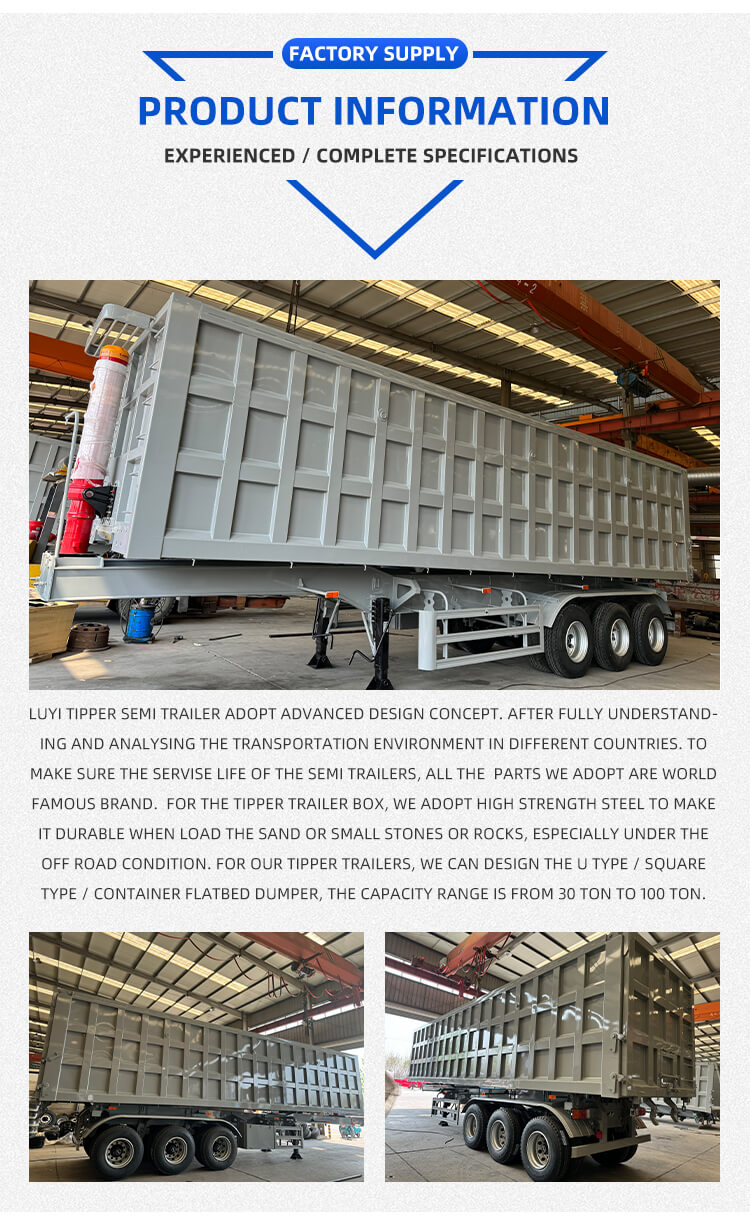 إن نصف المقطورة نصف المقطورة ذات أسطوانة الرفع الهيدروليكي ذات 3 محاور 50-60 طن من LUYI هي حل للخدمة الشاقة لنقل الرمل والحصى. تم تصنيعها من شاندونغ، الصين، من الفولاذ عالي الجودة، وتتميز بحمولة قصوى تبلغ 80 طنًا للتعامل مع الأحمال الثقيلة دون عناء.
