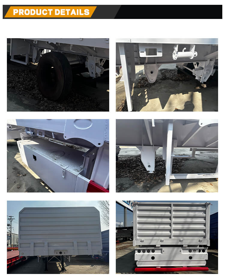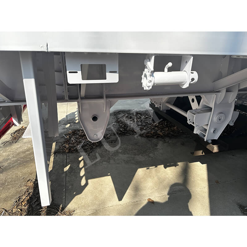 بقياس 12500×2500×1600 مم، فهي مجهزة بثلاثة محاور (اختيارية من العلامات التجارية المعروفة مثل Fuhua، BPW، SAIF، وCIMC) وخيارات التعليق المزدوج (التعليق الميكانيكي والهوائي) من أجل القيادة السلسة. تضمن أرجل الدعم القياسية التي يبلغ وزنها 28 طنًا التحميل والتفريغ الآمن، بينما تتكيف الإطارات بمواصفات 12R22.5/12.00R20/11R22.5 مع ظروف الطريق المختلفة. بالإضافة إلى ذلك، تعمل النوابض الورقية مقاس 90 × 13 × 10 ملم على تعزيز القدرة على التحمل، ويحسن السلم الميكانيكي الراحة التشغيلية، والألوان قابلة للتخصيص، ويعزز نظام الكبح الذي يتم التحكم فيه بالصمام سلامة القيادة، مما يوفر دعمًا موثوقًا للنقل.