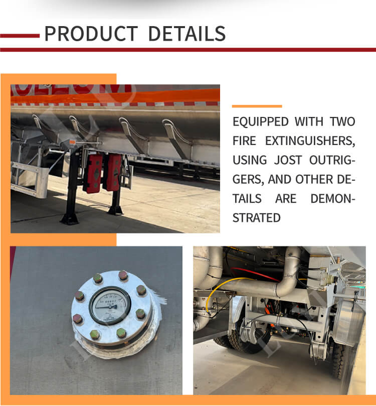 تم تجهيز هذه المقطورة بـ 4 محاور LUYI، ونظام التعليق الخاص بها يقدم خيارات التعليق الميكانيكي أو التعليق الهوائي. ومتوافق مع إطارات 12R22.5، فإنه يضمن القيادة المستقرة والموثوقة. أرجل الدعم من فئة 28 طنًا القياسية، والمسمار الرئيسي متوفر بحجم 2 بوصة (50 مم) أو 3.5 بوصة (90 مم)، مما يوفر قدرة قوية على التكيف. يمكن تخصيص لونه وفقًا لمتطلبات العملاء، حيث يجمع بين التطبيق العملي والتخصيص، مما يجعله خيارًا مثاليًا في مجال نقل الوقود.