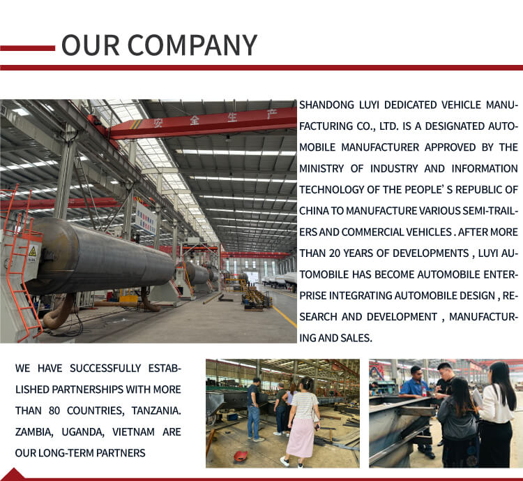 إن نصف مقطورة خزان الزيت LUYI 3-Axle Carbon Steel 40,000-Liter، المصنعة في مقاطعة Shandong، الصين، عبارة عن نصف مقطورة شاحنة فعالة لنقل الوقود. تم تصنيعه من الفولاذ الكربوني، وهو قوي ومتين، مع حمولة فعالة قصوى تزيد عن 30.000 كجم وقدرة تحميل تتراوح من 20 إلى 60 مترًا مكعبًا، وهو قادر على تلبية احتياجات نقل الوقود المتنوعة.