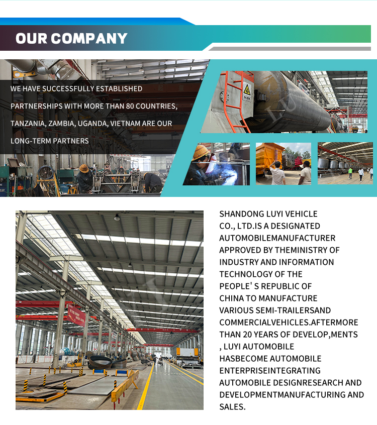 لون الجسم قابل للتخصيص لتلبية احتياجات الاستخدام المختلفة ومتطلبات صورة العلامة التجارية. باعتبارها شركة مصنعة محترفة لشبه المقطورة، تلتزم LUYI بمراقبة الجودة الصارمة والتصميم العملي للمنتج، مما يوفر حلولًا فعالة وآمنة لجميع أنواع سيناريوهات النقل الثقيلة. إنه شريك جدير بالثقة لأعمال التجارة الخارجية الخاصة بك!