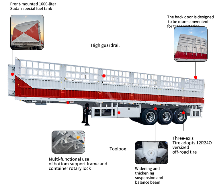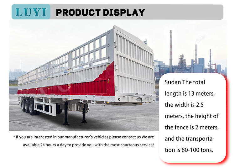 إن نصف المقطورة ذات الجدار الجانبي LUYI ذات 3 محاور عبارة عن عمود نقل ثقيل تم تصميمه لتلبية احتياجات البضائع السائبة، وهي متوفرة بسعات تحميل 50T و60T و80T. يبلغ قياسه 1550025504000 ملم، ويتميز بجسم فولاذي قوي ويأتي مع خيارين للتعليق: تعليق ميكانيكي لمتانة فعالة من حيث التكلفة ونظام تعليق هوائي لركوب أكثر سلاسة على الطرق الوعرة. إنها مُجهزة بـ 12 قطعة من الإطارات 12r22.5 ومحاور من الدرجة الأولى من Feichi، أو BPW أو Fuwa، فهي تضمن الأداء المستقر حتى في ظل الحمل الأقصى.