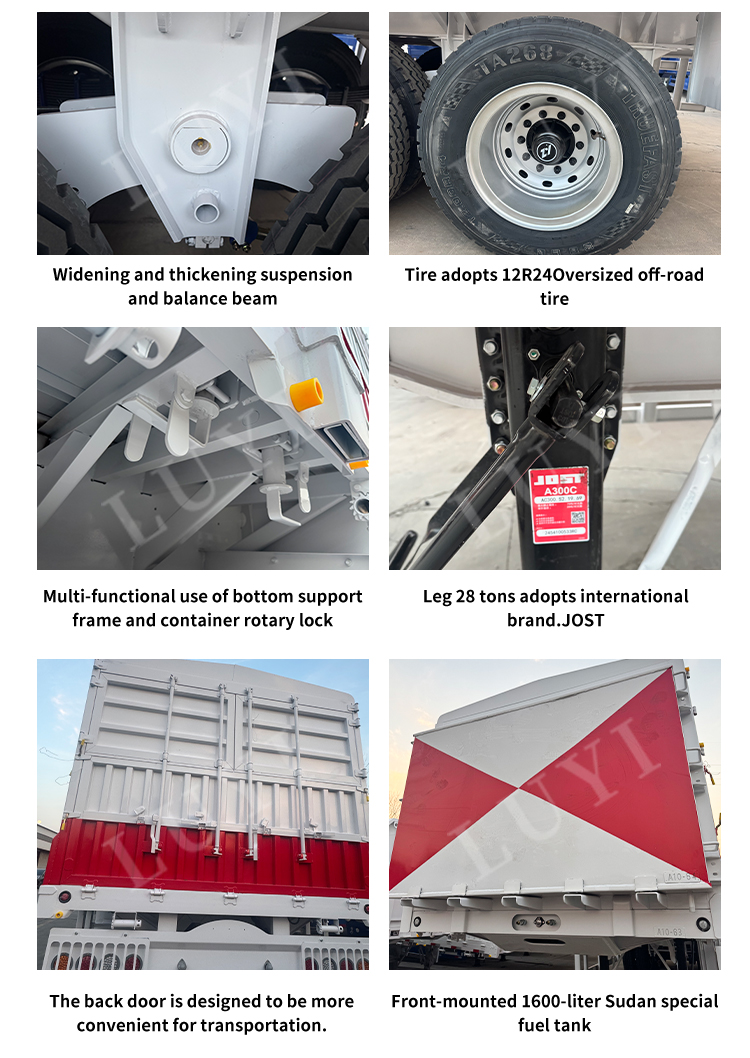 تم تجهيز المقطورة بمعدات هبوط Jost 28 طن ونظام فرامل مانعة للانغلاق ABS لتعزيز السلامة. وهي حاصلة على شهادات متعددة بما في ذلك ECE، وGC، وCE، وDOT، وISO/TS16949، لتلبية معايير الجودة العالمية. إنه غير قابل للإغراق الذاتي ويدعم خيارات الألوان المخصصة. تعتبر هذه المقطورة الجديدة مثالية لنقل الفحم والحبوب والخامات والسلع الزراعية، وقد تم تصميمها للتعامل مع ظروف الطرق الصعبة في آسيا الوسطى وأفريقيا، مما يوفر أداءً موثوقًا للأساطيل اللوجستية والمناجم والمزارع.