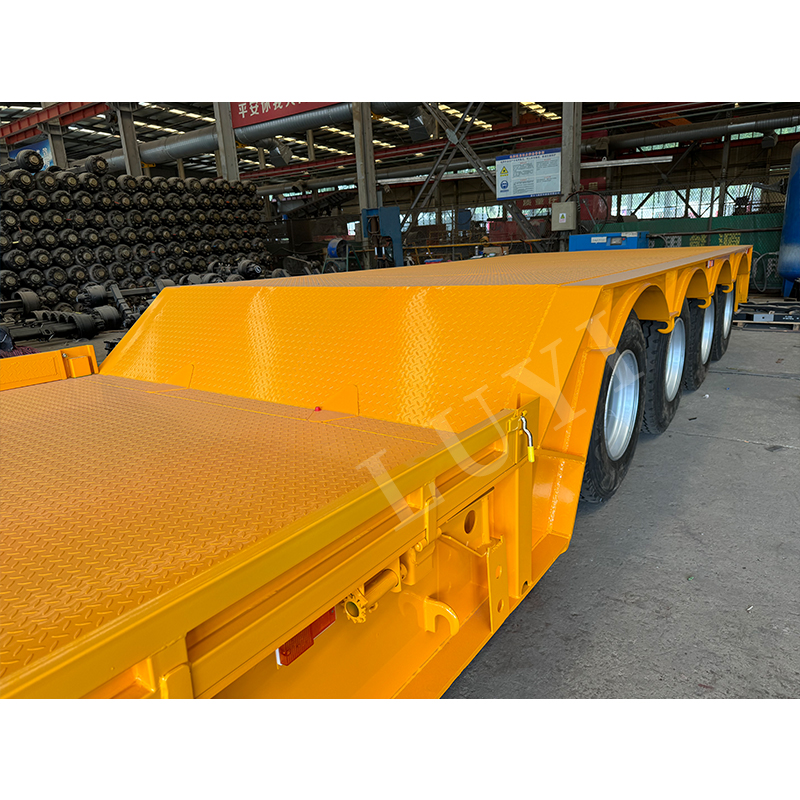توفر المقطورة تعليقًا ميكانيكيًا أو هوائيًا اختياريًا، مقترنًا بنوابض ورقية مقاس 90 (عرض) × 13 (سمك) × 10 (طبقات) وإطارات اختيارية 12R22.5/12.00R20/11R22.5، مما يضمن الثبات والموثوقية.النقل القادر. وهي مجهزة أيضًا بأرجل دعم قياسية من JOST بوزن 28 طنًا لتحقيق ثبات قوي. تبني العلامة التجارية Luyi جودة المنتج بمواد صلبة وحرفية رائعة، مما يوفر حلاً آمنًا وفعالاً لنقل المعدات الثقيلة لمسافات طويلة.