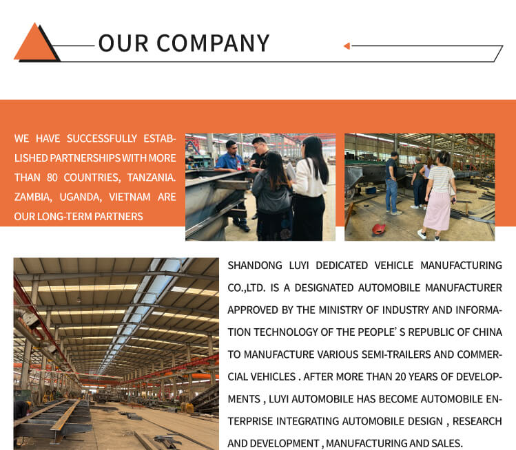 مصنوع من الفولاذ عالي الجودة، يستخدم العارضة الرئيسية الفولاذ T700/Q345 لقدرة تحمل قوية. إنها مجهزة بمحاور ماركة Fuwa بوزن 13 طنًا ونظام تعليق ميكانيكي مستقر، مقترنًا بخيارات الإطارات 11.00r20 أو 12r22.5 أو 315/385 للتكيف مع ظروف الطريق المختلفة. يضمن نظام الكبح ثنائي الخط سلامة القيادة، بينما يضمن جهاز الهبوط القياسي بوزن 28 طنًا ودبابيس JOST King مقاس 2 بوصة (50 مم)/3.5 بوصة (90 مم) التشغيل المريح. لون الجسم يدعم تخصيص العملاء، وتلبية متطلبات الاستخدام الشخصية.