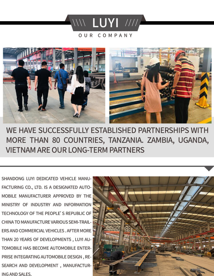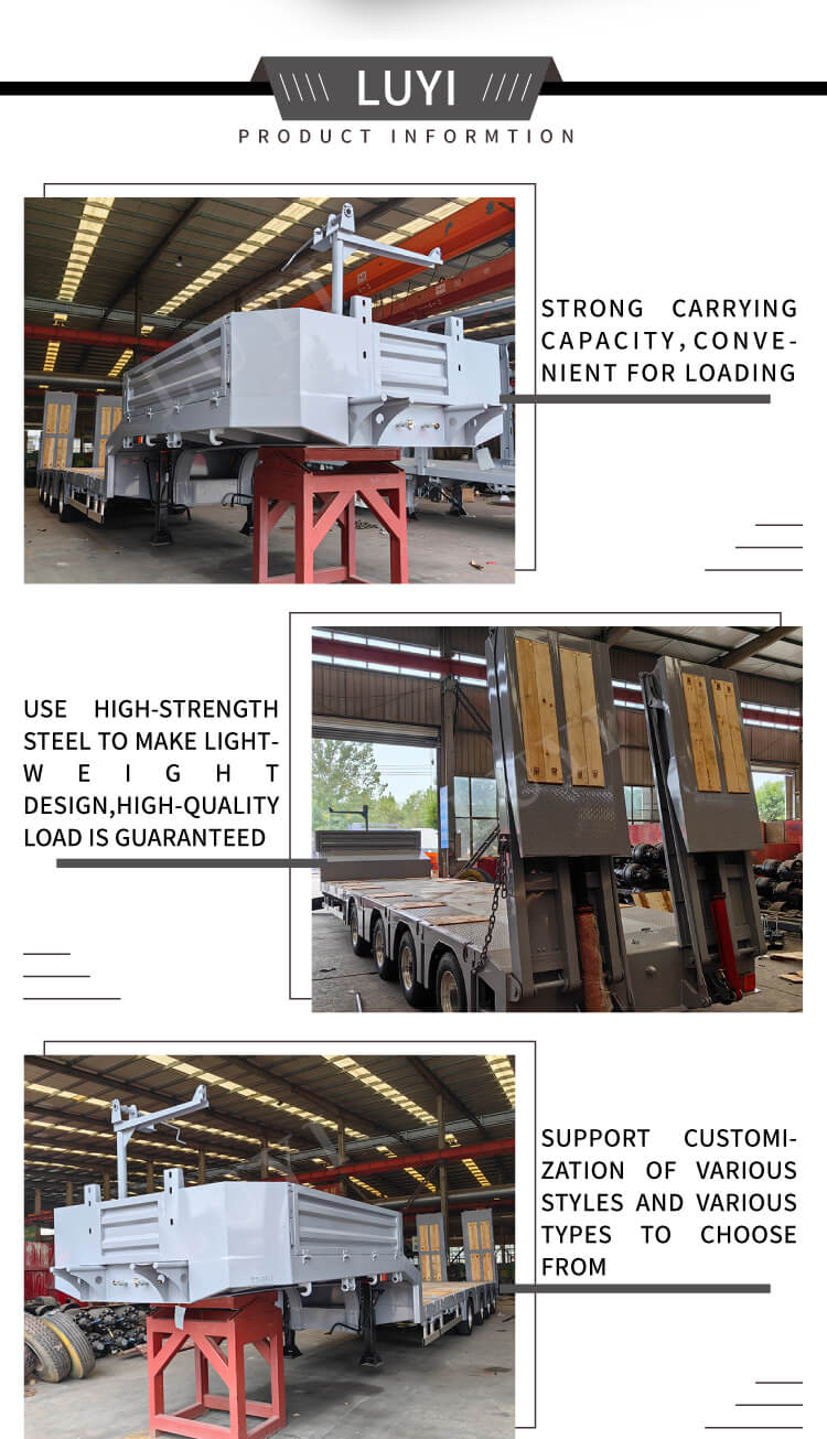 LUYI 4-Axle Telescope 6-Meter Lowboy نصف مقطورة، تم إنتاجها في مقاطعة Shandong، الصين، وهي عبارة عن مقطورة شاحنة جديدة ذات أداء ممتاز. جسمها مصنوع من الفولاذ عالي الجودة، ويتميز بهيكل قوي ومتين، وتتراوح حمولتها الفعالة القصوى من 20,001 كجم إلى 25,000 كجم، مما يمكنه تلبية احتياجات نقل البضائع المختلفة.