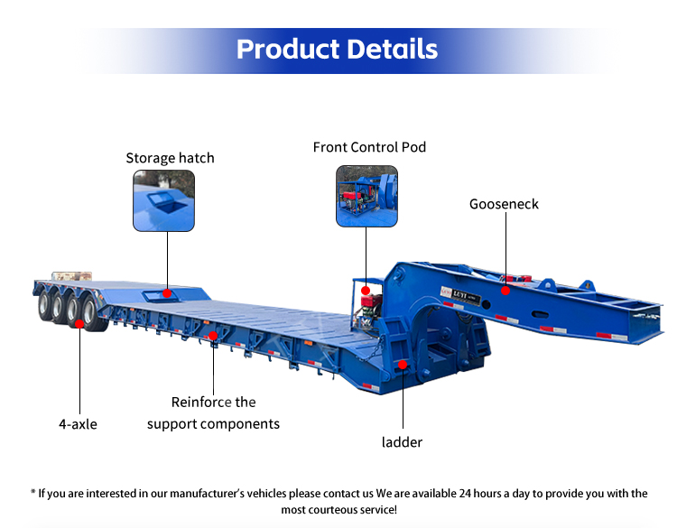 يتيح التصميم المنحني سهولة التحميل والتفريغ، مما يسمح للآلات الثقيلة بالقيادة على المقطورة دون الحاجة إلى معدات مساعدة إضافية. تعتبر هذه المقطورة مثالية لنقل آلات البناء، ومعدات التعدين، ومنتجات الصلب الكبيرة، فهي توازن بين الكفاءة والسلامة، مما يجعلها خيارًا موثوقًا للعمليات اللوجستية والهندسية.