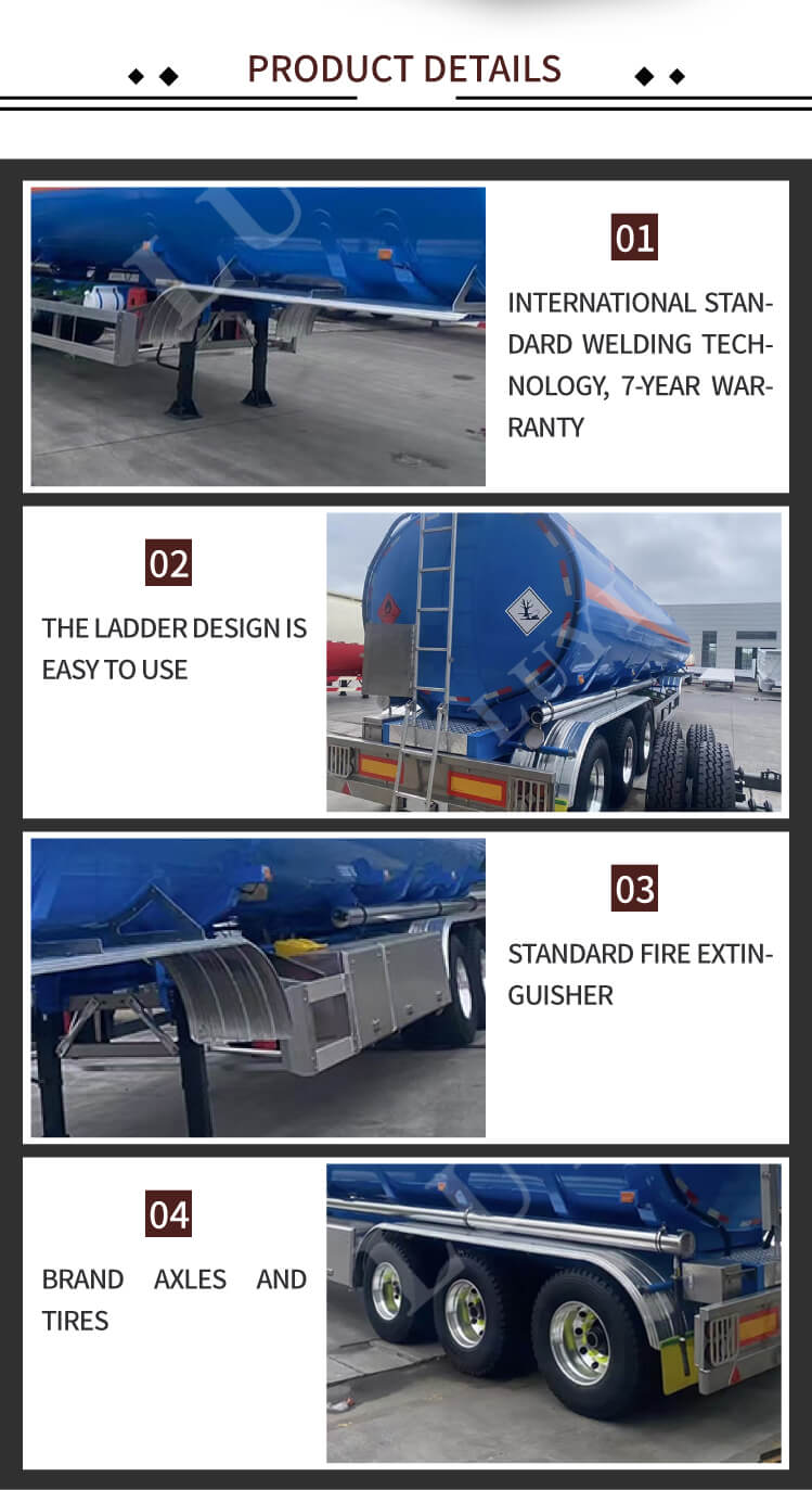 إن نصف مقطورة خزان الزيت من الفولاذ الكربوني ثلاثي المحاور LUYI عبارة عن حل نقل للخدمة الشاقة تم تصميمه لتوصيل البنزين والزيت بكفاءة، مع سعة خزان تتراوح من 40,000 إلى 45,000 لتر وحمولة قصوى تتجاوز 30,000 كجم. مصنوعة من الفولاذ الكربوني الممتاز، وتتميز المقطورة بأبعاد قوية تبلغ 10800×2550×3......