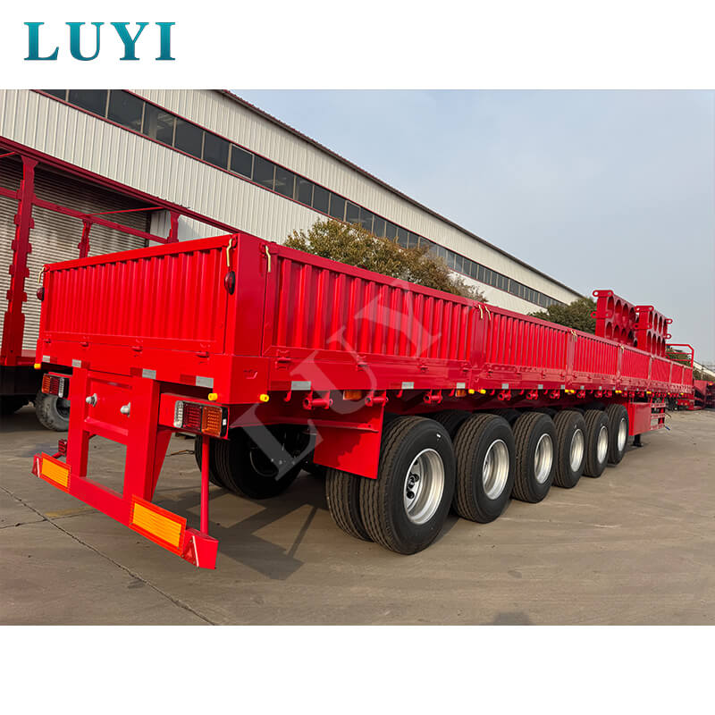 LUYI 6-Axle 15.5m 80-100 Ton 40ft Side Wall نصف مقطورة، وتسمى أيضًا نصف مقطورة من النوع المسطح/المسطح، نشأت من شاندونغ، الصين. إنها نصف مقطورة عالية الجودة مصممة لنقل الحاويات والبضائع السائبة. إنها مصنوعة بالكامل من الفولاذ، وتبلغ أبعادها 15500x2500x1600 مم ولها حمولة فعالة قصوى تبلغ 60-100 طن، وتتميز بقدرة تحمل قوية لتلبية احتياجات نقل البضائع الثقيلة بسهولة.