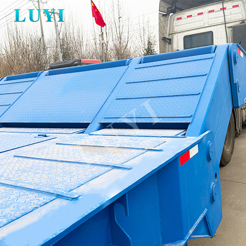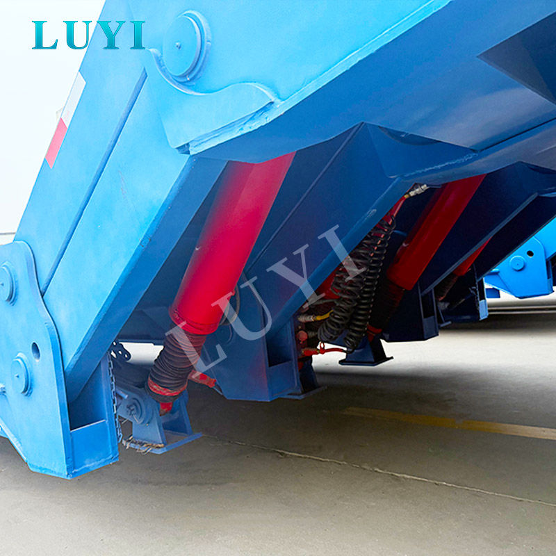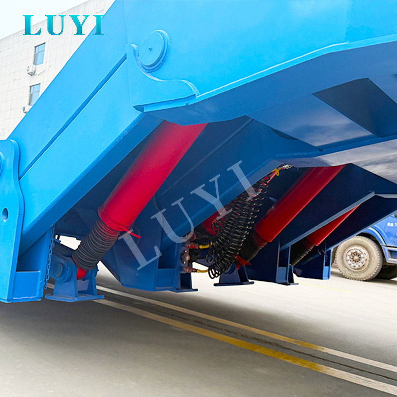 معقوفة قابلة للفصل للتحميل الأمامي: يمكن فصل معقوفة الهيدروليكية بسرعة وسهولة، مما يؤدي إلى خفض الجزء الأمامي من المقطورة إلى الأرض لإنشاء منحدر لطيف للقيادة. وهذا يلغي الحاجة إلى تسلق المنحدرات عالية المخاطر.