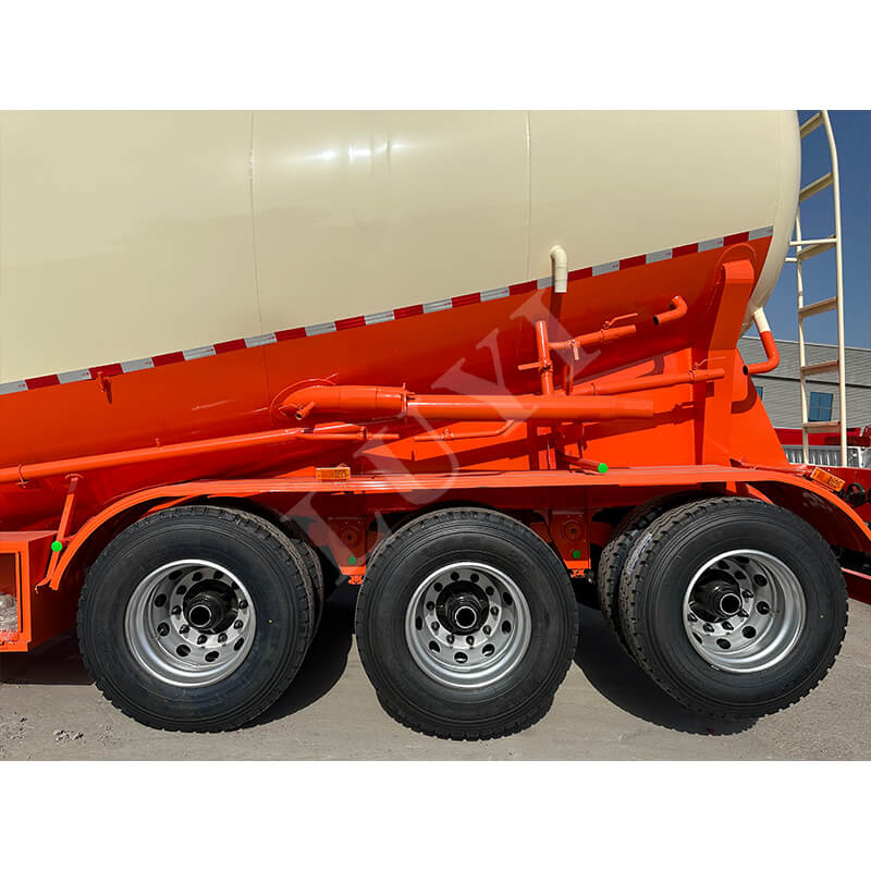 أبعاد المقطورة هي 10500×2550×4000 ملم. وهي مجهزة بخيارين من نظام التعليق الميكانيكي/الهوائي، مقترنًا بهيكل مستقر ثلاثي المحاور وأذرع امتداد للخدمة الشاقة بوزن 28 طنًا لضمان الثبات أثناء ركن السيارة والقيادة. يعزز نظام الكبح ثنائي الخط السلامة. تتضمن خيارات الإطارات مواصفات مختلفة مثل 11.00r20 و12r22.5، ويتوفر الدبوس الرئيسي في نموذجين: JOST 50 مم / 90 مم. بالإضافة إلى ذلك، يمكن تخصيص اللون وفقًا للاحتياجات، والتكيف بشكل كامل مع سيناريوهات النقل المختلفة والمتطلبات الجمالية، مما يجعلها معدات موثوقة لنقل الأسمنت السائب.