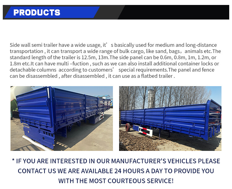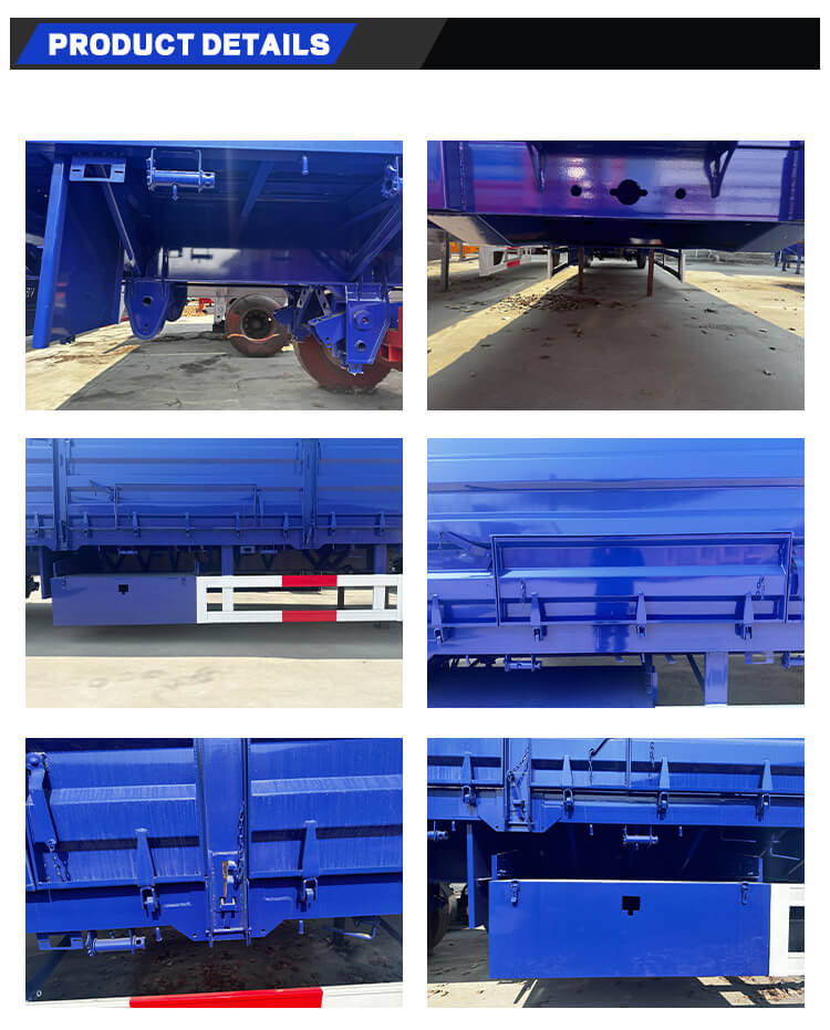تبلغ أبعاد المقطورة 12500×2500×1600 مم، ومجهزة بثلاثة محاور (13 طنًا لكل منها) ونظام تعليق ميكانيكي لضمان القيادة السلسة وتحمل الحمولة الموثوق به. وهو متوافق مع معدات الهبوط القياسية بوزن 28 طنًا لعمليات التحميل والتفريغ الآمنة، والإطارات بمواصفات 12R22.5/12.00R20/11R22.5 للتكيف مع ظروف الطريق المختلفة. بالإضافة إلى ذلك، تعمل النوابض الورقية مقاس 90×13×10 مم على تعزيز قدرة التحمل، كما يعمل السلم الميكانيكي على تحسين الراحة التشغيلية، ويمكن تخصيص الألوان حسب الحاجة، مما يوفر حلاً مخصصًا مرنًا وموثوقًا للخدمات اللوجستية والنقل.