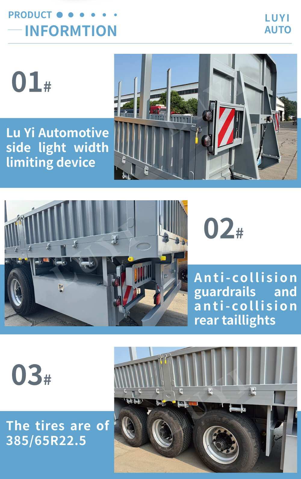 تعتبر نصف المقطورة ذات الجدار الجانبي ثلاثي المحاور مع الأعمدة من LUYI، وهي علامة تجارية مقرها في Shandong، الصين، خيارًا مثاليًا لنقل البضائع السائبة والحاويات. لقد تم تصنيعه من الفولاذ عالي الجودة، ويتميز بأبعاد دقيقة تبلغ 12500x2500x1600mm وقدرة الحمولة القصوى 60 طنًا، والتي يمكن أن تلبي قدرة التحمل القوية بسهولة احتياجات النقل الثقيلة المختلفة.