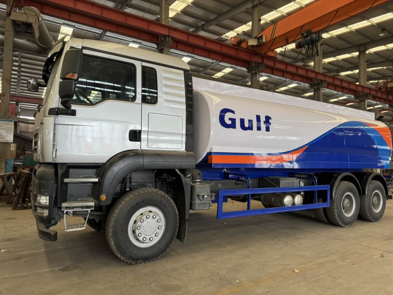 دخل عملاء قيرغيزستان لأول مرةشاحنة خزان النفطورشة إنتاج مصنع Luyi. داخل الورشة، كان خط تشكيل الخزان لشاحنات صهاريج الزيت يخضع لعمليات اللحام الآلي. قدم الفنيون من مصنع Luyi لعملاء قيرغيزستان أن شاحنات صهاريج النفط تستخدم الفولاذ الخاص لأوعية الضغط Q345R، بسمك خزان يبلغ 8 ملم. بعد اختبار ضغط الماء بمعدل 1.2 مرة من ضغط العمل، لم يكن هناك أي تسرب، وهو ما يتوافق تمامًا مع معايير السلامة لمركبات نقل البضائع الخطرة في قيرغيزستان. انحنى عملاء قيرغيزستان للتحقق من جودة اللحامشاحنات صهاريج النفط، وقياس سمك الخزان باستخدام الفرجار، وأعرب عن تقديره لدقة التصنيع في مصنع Luyi.