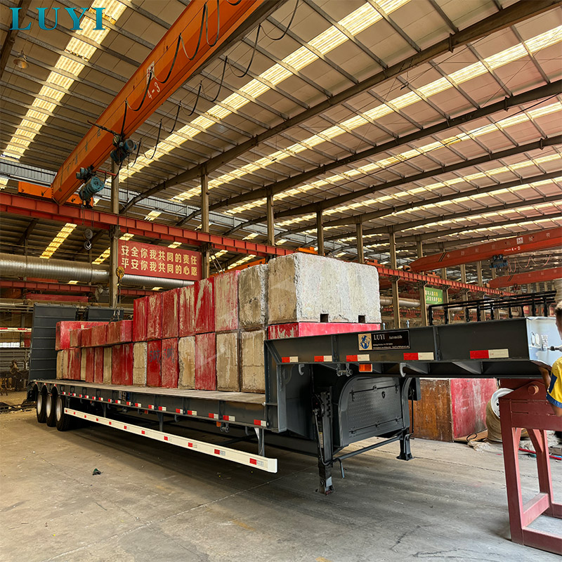في ورشة الإنتاج، قام موظفو مصنع Luyi بتوجيه العملاء السعوديين وشرحوا بالتفصيل عملية تصنيع المنتج3 محاور نصف مقطورة مسطحة معقوفة.كل خطوة، من قطع الفولاذ عالي القوة إلى لحام الإطار وتجميع الهيكل المعقوفة، تلتزم بدقة بمعايير الجودة. أثار العملاء أسئلة حول الجوانب الرئيسية مثل قوة الإطار لشبه المقطورة المسطحة ذات المحور المنحني وتوزيع الضغط في الجزء المنحني. قدم الفريق الفني إجابات احترافية واحدة تلو الأخرى بناءً على تفاصيل العملية، مما مكن العملاء من فهم مراقبة الجودة بوضوح لشبه المقطورة المسطحة المنحنية ذات 3 محاور.