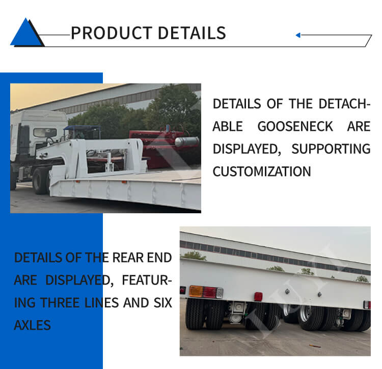 فيما يتعلق بالتفاصيل، فهي مزودة بمعدات هبوط قياسية بوزن 28 طنًا وتوفر دبابيس JOST King في خيارين: 2 بوصة (50 مم) أو 3.5 بوصة (90 مم) للتكيف مع الجرارات المختلفة. لون الجسم قابل للتخصيص من قبل العملاء، كما أن التصميم المنحني القابل للطي يعزز مرونة النقل. إنه خيار مثالي لنقل المعدات الثقيلة في مجالات الهندسة والتعدين وغيرها من المجالات.